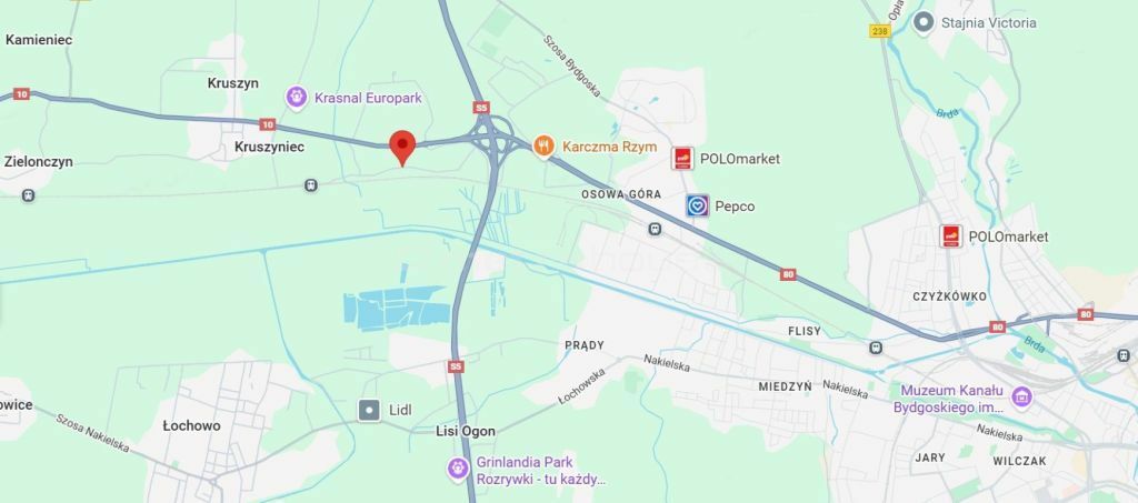 Szybki dojazd do Sicienka, ok. 1012 minut do granic Bydgoszczy